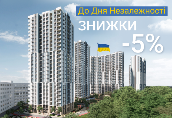 До Дня незалежності України пропонуємо знижку 3% на готові 1-кімнатні та 2-кімнатні квартири