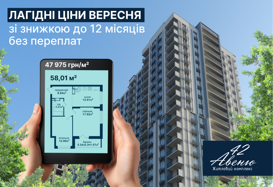 Пропонуємо обмежену пропозицію квартир за спеціальною ціною до Дня Незалежності України у перший черзі ЖК «Авеню 42»