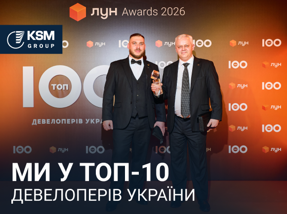 KSM-GROUP підтвердив свою лідерську позицію на ринку нерухомості України, увійшовши до ТОП-10 у межах премії «ТОП-100 девелоперів України» за підсумками 2025 року